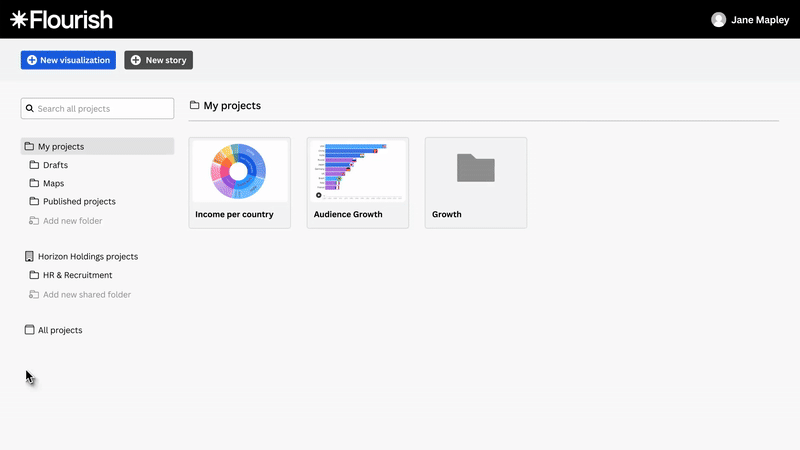 Flourish ek interactive data visualization tool hai jisme ready-made templates milte hain. Aap bas apna data upload karo, ek template choose karo, customize karo aur voila! – ek professional looking interactive chart ya map ready.