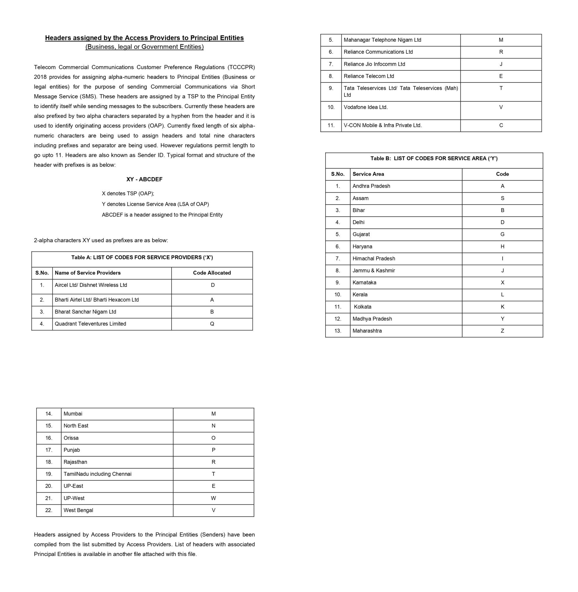 Agar aap is topic ko aur depth me samajhna chahte ho, to humne ek detailed reference compile kiya hai jo Access Providers (jaise telecom operators) dwara Principal Entities (business, legal ya government organizations) ko assign kiye gaye headers ka breakdown deta hai.